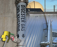 Wastewater treatment plant (WWTP) digester processes produce digester gas, a combination of methane (CH4) and carbon dioxide (CO2) with a small percentage of other trace gases. The digester gas composition can vary with the process and temperature (e.g. seasonally) but a typical average is in the 65% (±5%) CH4 35% (±5%) CO2 range. Digester gas is also a wet and dirty gas, typically containing entrained hydrogen sulfides, which condense and deposit on pipe walls and anything else in the pipe.